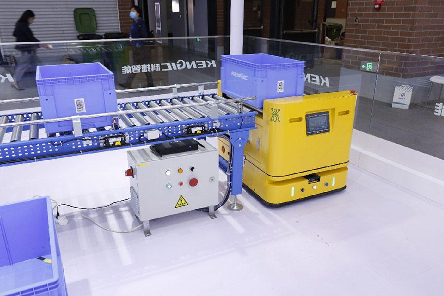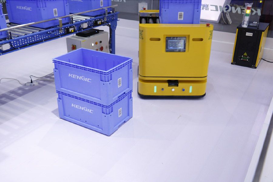 螞蟻機器人在此次展會現場進行無人化自主搬運的動態演示:在調度系統的指揮下,螞蟻自主研發的激光SLAM輥筒式料箱AGV自動搬運料箱與生產線對接,自動配送過程中能夠高效精準對接搬運線體,同時演示現場設置障礙物,AGV能夠自動識別障礙,避障繞行,完成貨物的實時運輸。螞蟻機器人的高效對接和精準避障滿足了醫藥行業在藥品種類多和環境復雜的背景下對安全頻繁轉運的配送需求。